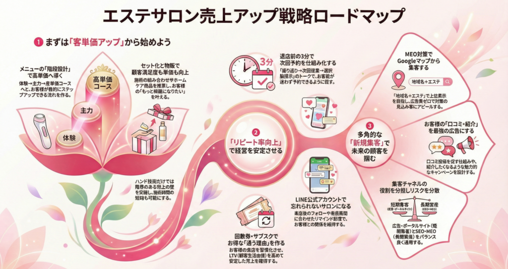 【プロ監修】エステサロン売上アップ完全ガイド|集客・単価・リピートを一気に強化