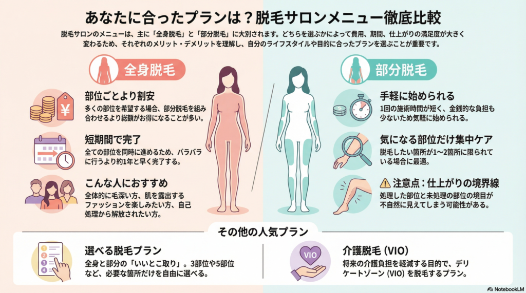 | 全身脱毛 | 全身脱毛(顔・VIO含む) | 360度美肌・自己処理卒業コース |