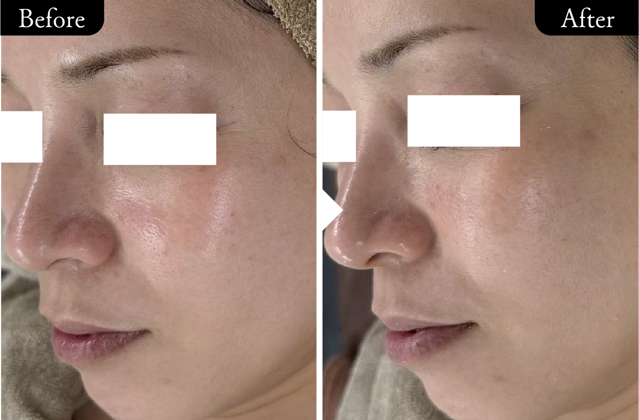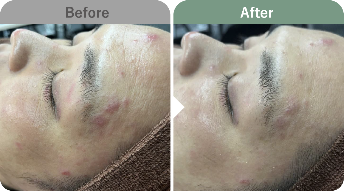 施術後、「肌が柔らかくトーンアップした」「肌質がもっちりして潤った」「翌日のファンデーションのノリが変わる!」「赤み・刺激・乾燥がないのに、透明感アップ」など多くのお声をいただいています。