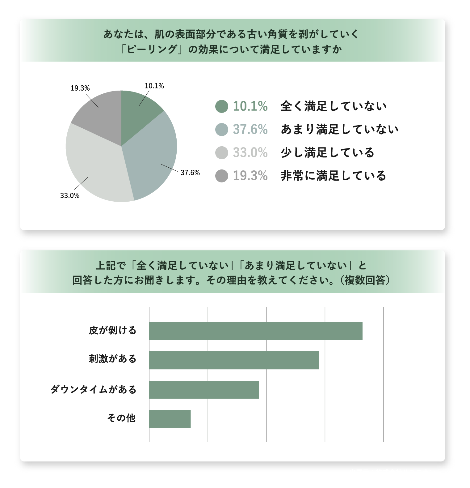 これまで剥離するタイプのピーリングを経験した方の約半数が“満足していない”というデータが出ています。